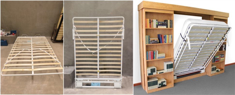 Murphy beds can come with bookshelf. Bookshelf replaces bed legs. The bookshelf opens and closes automatically. It can also remain level with the floor the entire time the Murphy bed is opened and closed. Frequently read books can be placed on the bookshelf for easy access. Small pots of green plants can also be placed on bookshelves for decoration.