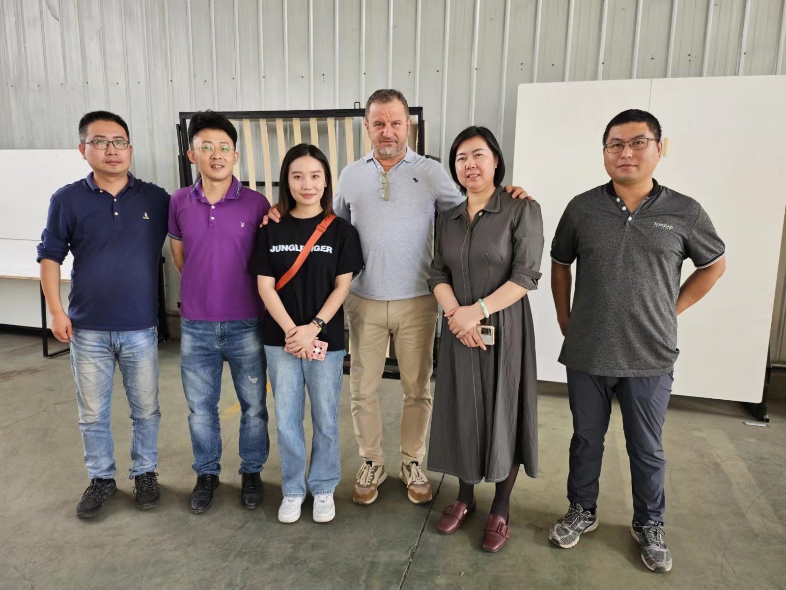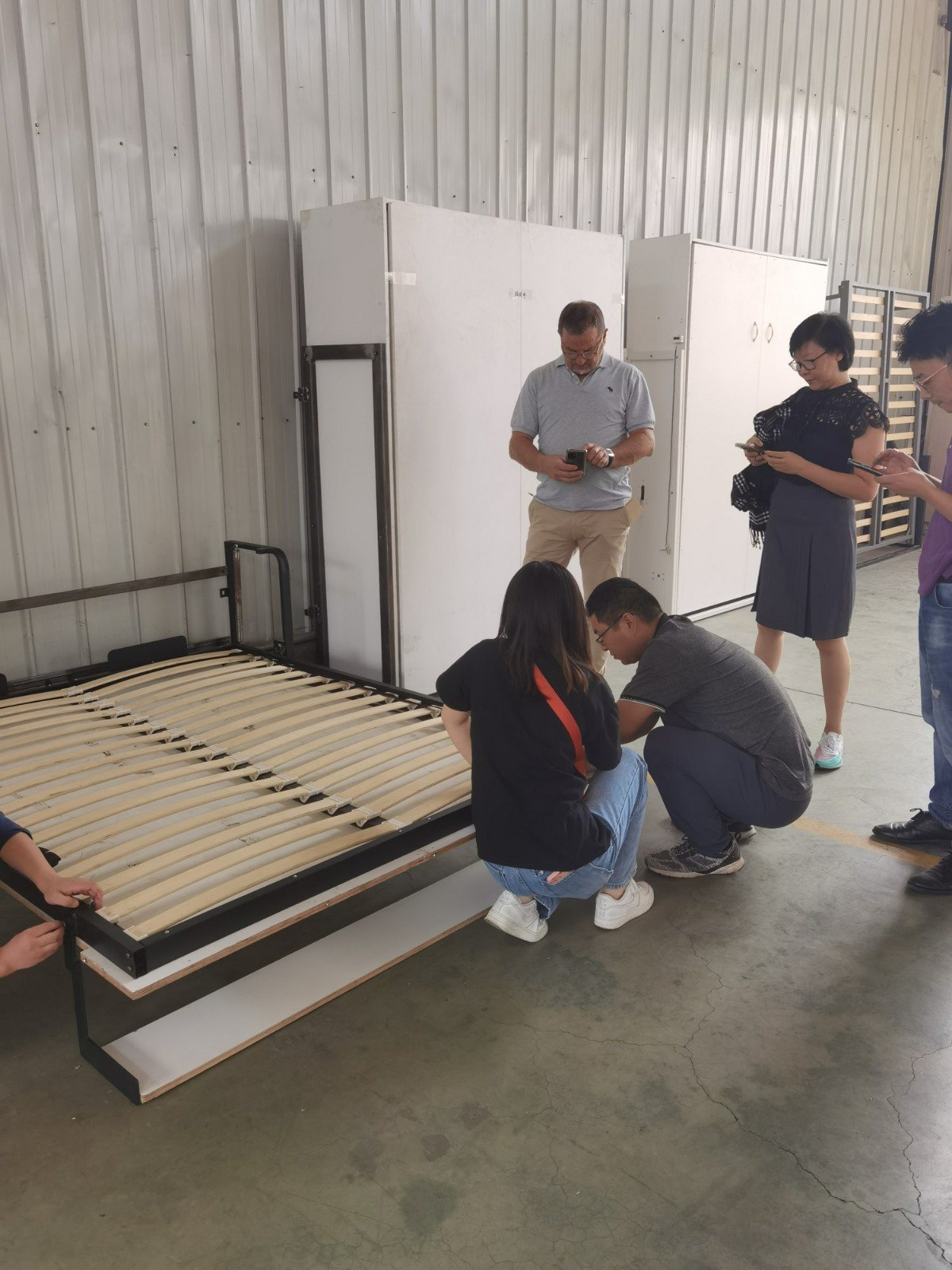 Recently, one of our customers came to our factory to visit the production and sample display area. Face-to-face communication allows us to deepen our connections with each other. Our customers have once again been impressed with our wall bed.